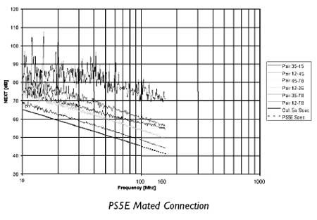 • Minimum average values measured at 100 MHz with PS5E plugs: