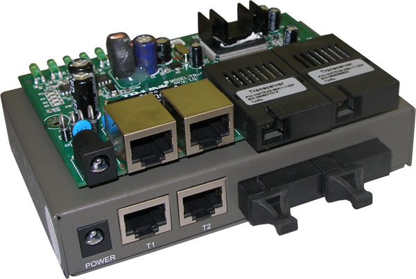 Fiber Converter. The converter mediates between a 10/100Base-Tx segment